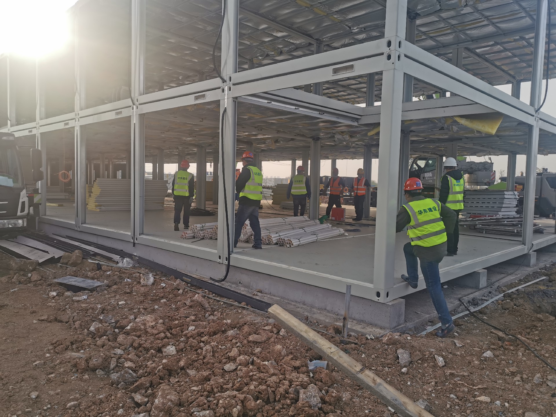 4月3日下午,市住建局緊急通知,要求集團華東公司組織骨干力量支援市方艙醫(yī)院項目的建設。華東公司接到通知后立即行動,制定援建計劃,抽調(diào)各項目部骨干力量,組建援建突擊隊,并向參與援建的管理和施工人員下發(fā)集結(jié)動員令。4日早6時,以熟練安裝技工20余人為主的突擊隊裝備防護用品和專用安裝工具,前往市方艙醫(yī)院項目駐地。抵達援建項目后,華東公司副總經(jīng)理杜濤,專職安全員魯陽指揮突擊隊及時對接,迅速開展工作,以全力開動不停歇的勁頭加快項目建設,保證完成市方艙醫(yī)院在交付期前的各項工作任務。